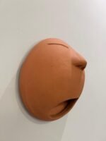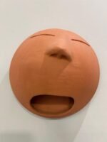 Escultura Bocejo Divertido redondo em cerâmica é uma peça única, feita de forma artesanal. A escultura de parede retrata a expressão facial de um bocejo, que parece meio divertido com alguma situação, em formato redondo.