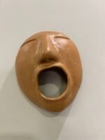 A linguagem do rosto é provavelmente a forma mais comum de comunicação entre as pessoas. Muitas vezes, os sinais visíveis do que vai dentro de cada um contradizem a arrumação racional das palavras – fala-se mais com caras e bocas do que com palavras. A obra é confeccionada em argila, queimada em forno a lenha, ao natural.