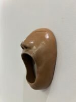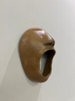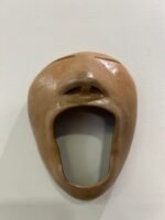 Escultura Bocejo Divertido modelo pingo no tamanho M em cerâmica é uma peça única, feita de forma artesanal. A escultura de parede retrata a expressão facial de um bocejo, que parece meio divertido com alguma situação, em formato redondo.
