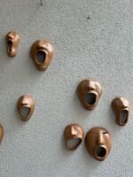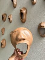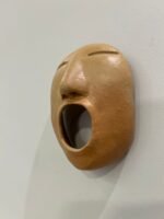 A linguagem do rosto é provavelmente a forma mais comum de comunicação entre as pessoas. Muitas vezes, os sinais visíveis do que vai dentro de cada um contradizem a arrumação racional das palavras – fala-se mais com caras e bocas do que com palavras. A obra é confeccionada em argila, queimada em forno a lenha, ao natural.