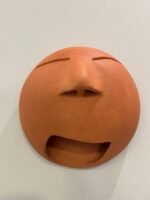 Escultura Bocejo Divertido redondo em cerâmica é uma peça única, feita de forma artesanal. A escultura de parede retrata a expressão facial de um bocejo, que parece meio divertido com alguma situação, em formato redondo.