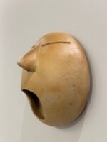 A linguagem do rosto é provavelmente a forma mais comum de comunicação entre as pessoas. Muitas vezes, os sinais visíveis do que vai dentro de cada um contradizem a arrumação racional das palavras – fala-se mais com caras e bocas do que com palavras. A obra é confeccionada em argila, queimada em forno a lenha, ao natural.