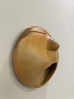Escultura Bocejo Divertido redondo em cerâmica é uma peça única, feita de forma artesanal. A escultura de parede retrata a expressão facial de um bocejo, que parece meio divertido com alguma situação, em formato redondo.