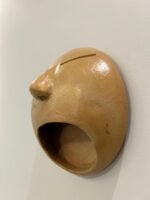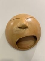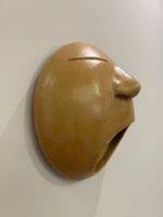 Escultura Bocejo Divertido redondo em cerâmica é uma peça única, feita de forma artesanal. A escultura de parede retrata a expressão facial de um bocejo, que parece meio divertido com alguma situação, em formato redondo.