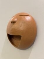 A linguagem do rosto é provavelmente a forma mais comum de comunicação entre as pessoas. Muitas vezes, os sinais visíveis do que vai dentro de cada um contradizem a arrumação racional das palavras – fala-se mais com caras e bocas do que com palavras. A obra é confeccionada em argila, queimada em forno a lenha, ao natural.